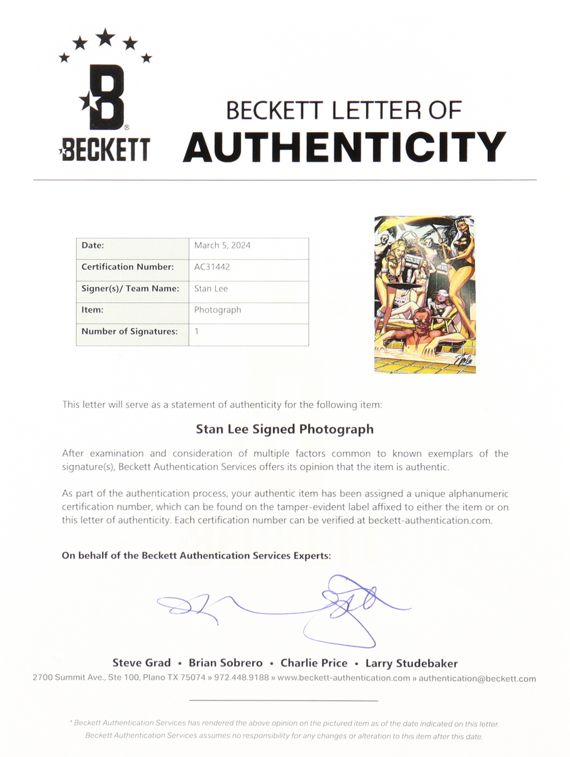 The autograph includes an official Beckett Authentication Services hologram and matching LOA for authenticity purposes.