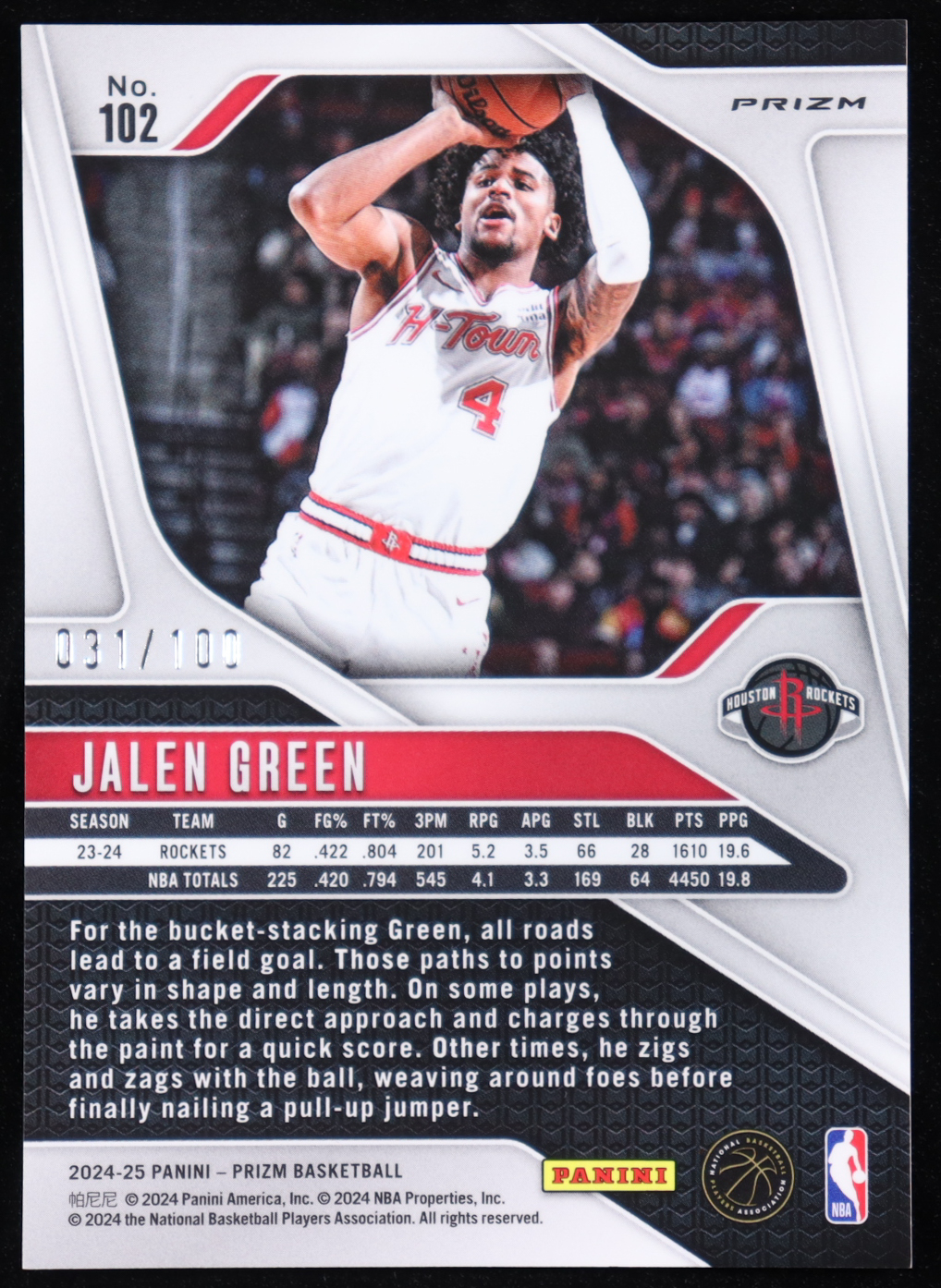 Jalen Green 2024-25 Panini Prizm Fast Break Red #102 #031/100