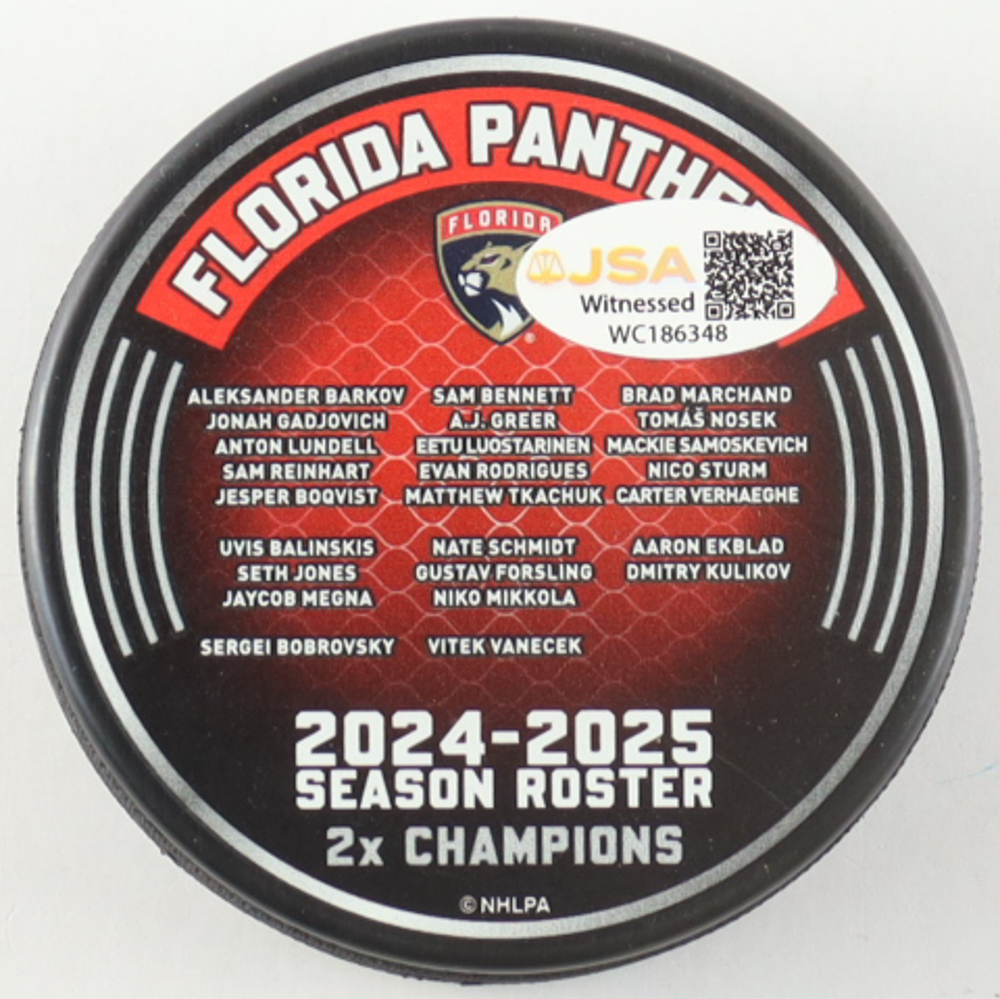Sergei Bobrovsky Signed Panthers 2025 Stanley Cup Champions Logo Hockey Puck (JSA)