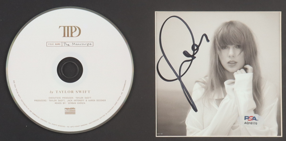 Custom frame measures approximately 16" x 22" in size. Features a "The Torture Poets Department" CD insert that has been hand-signed by Taylor Swift. The display also includes the disc, Case, and a set of (4) LP Release Special Edition Cards.