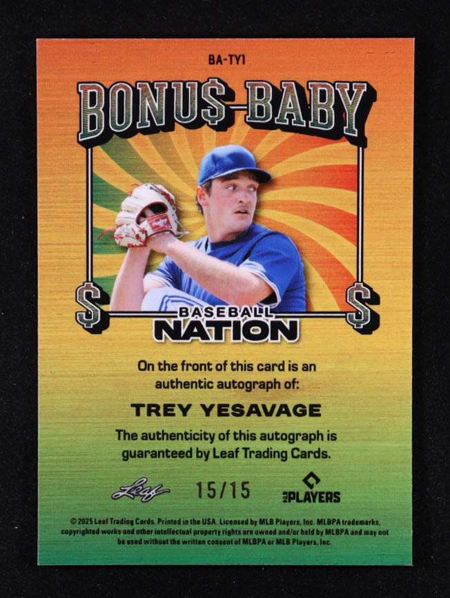 Trey Yesavage 2025 Leaf Metal Autographs Bonu$ Baby Silver #BATY1 #15/15