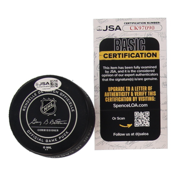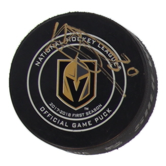 Las Vegas Golden Knights logo hockey puck has been hand-signed by Malcolm Subban. Please note the fading signature.