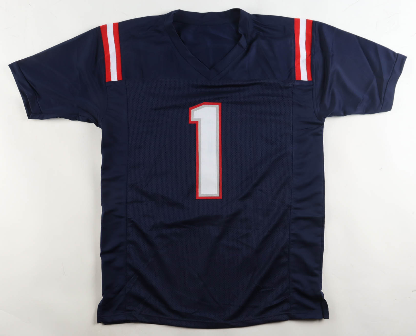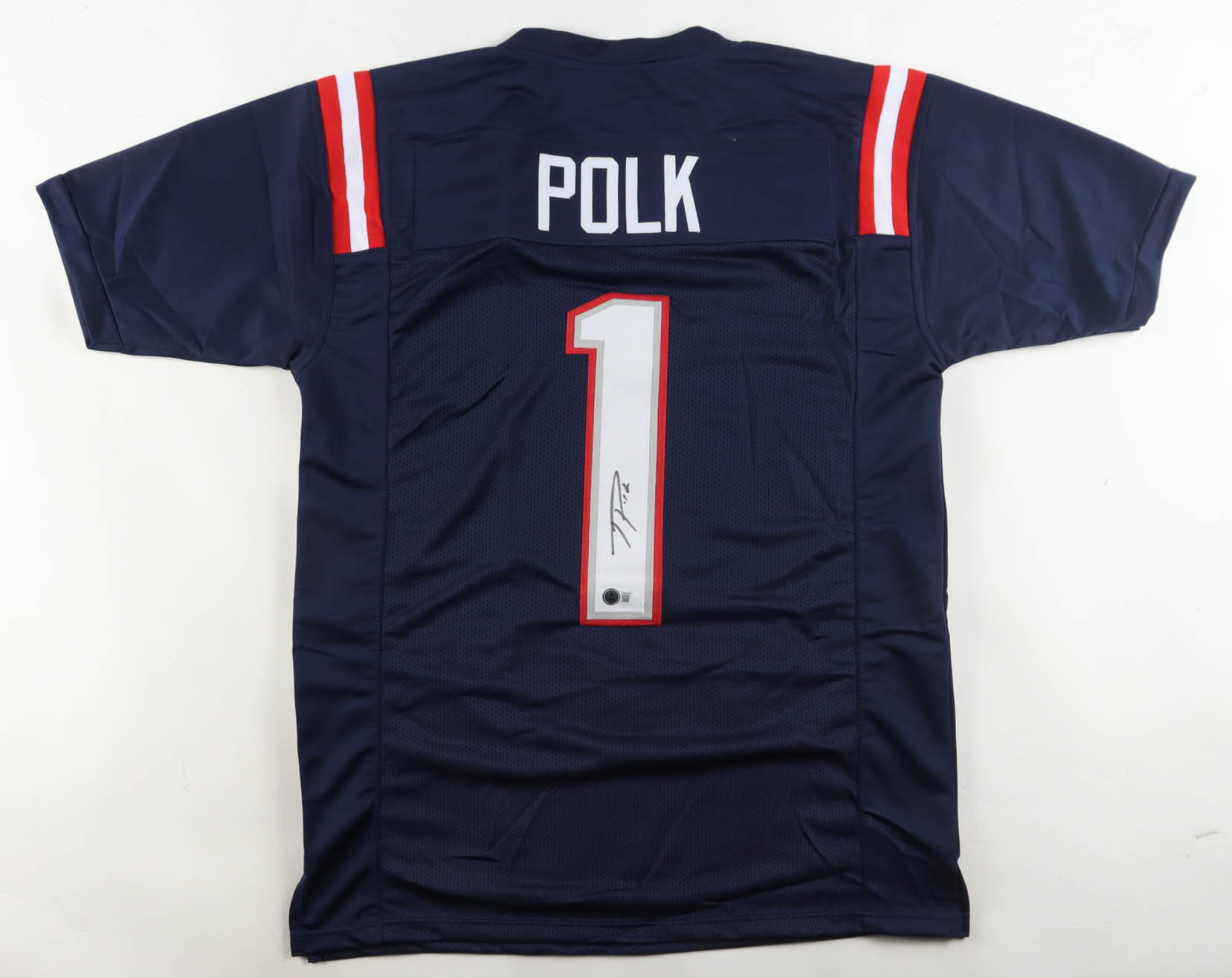 Custom jersey with everything sewn on, size XL. Hand-signed by Ja'Lynn Polk (New England Patriots).