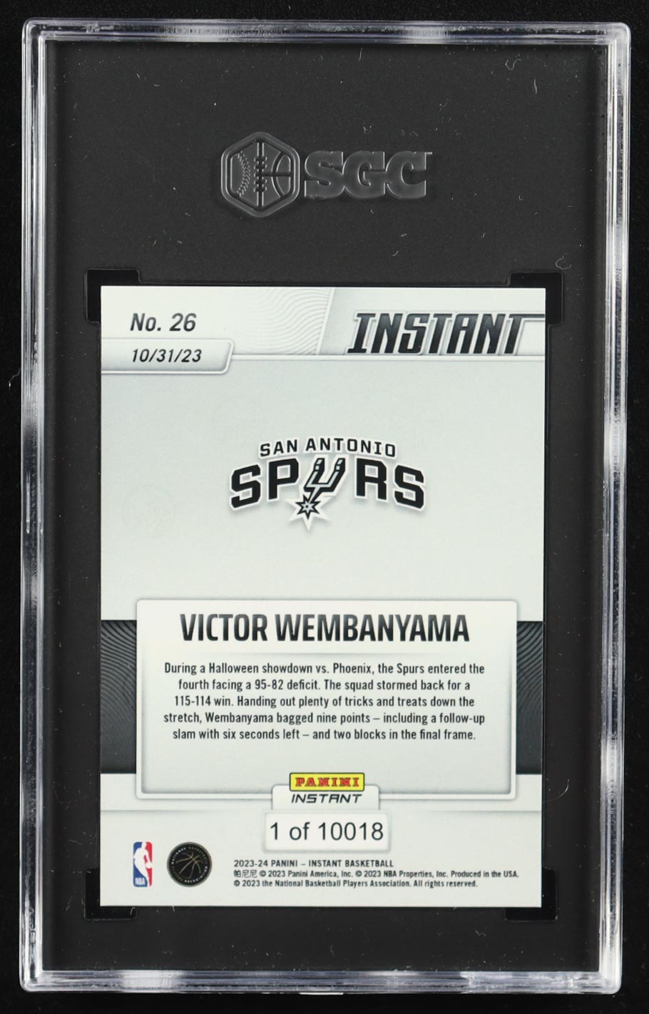 Victor Wembanyama 2023-24 Panini Instant #26 RC (SGC 9.5)