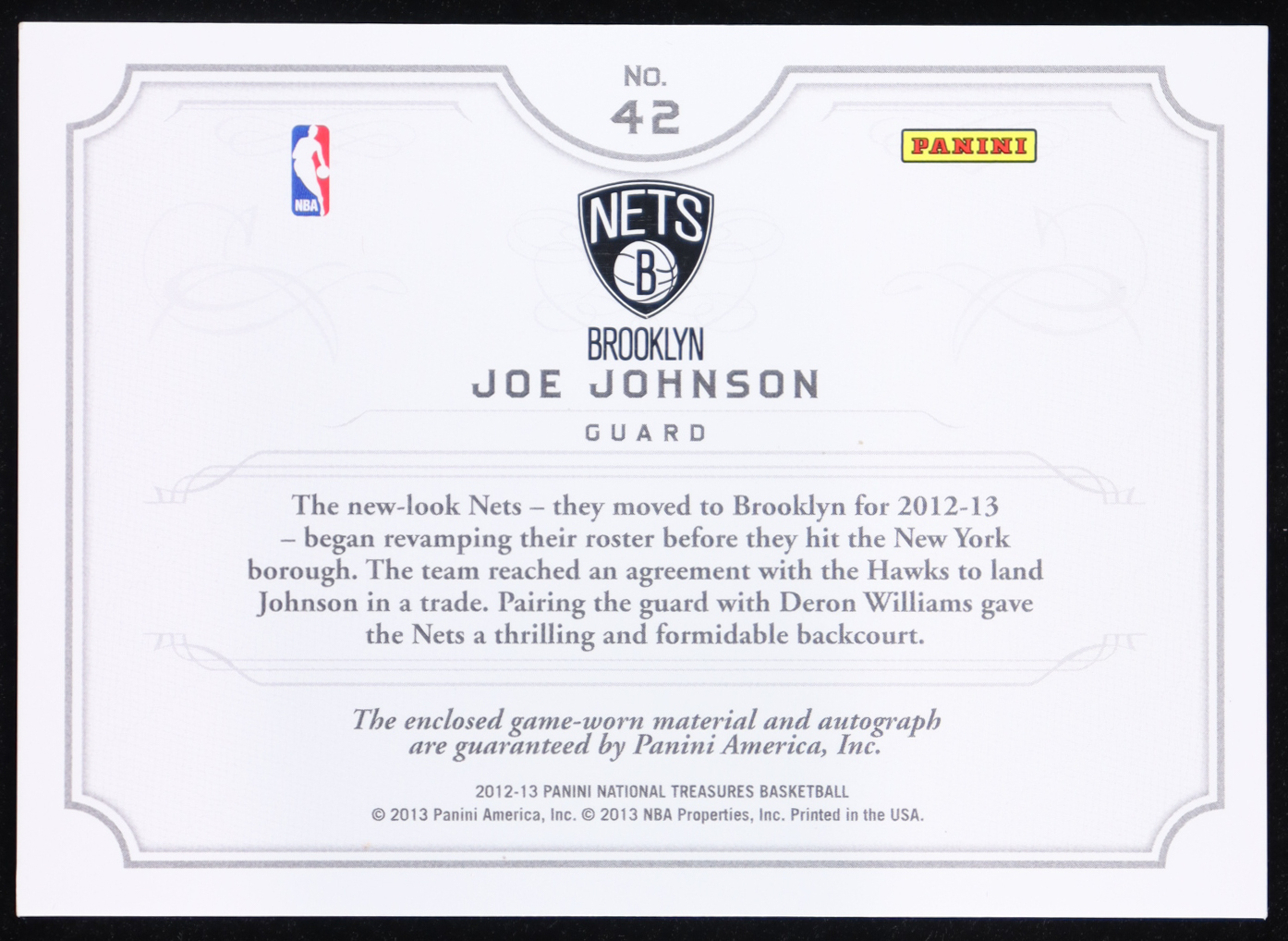 Joe Johnson 2012-13 Panini National Treasures NBA Gear Signatures #42 #48/49