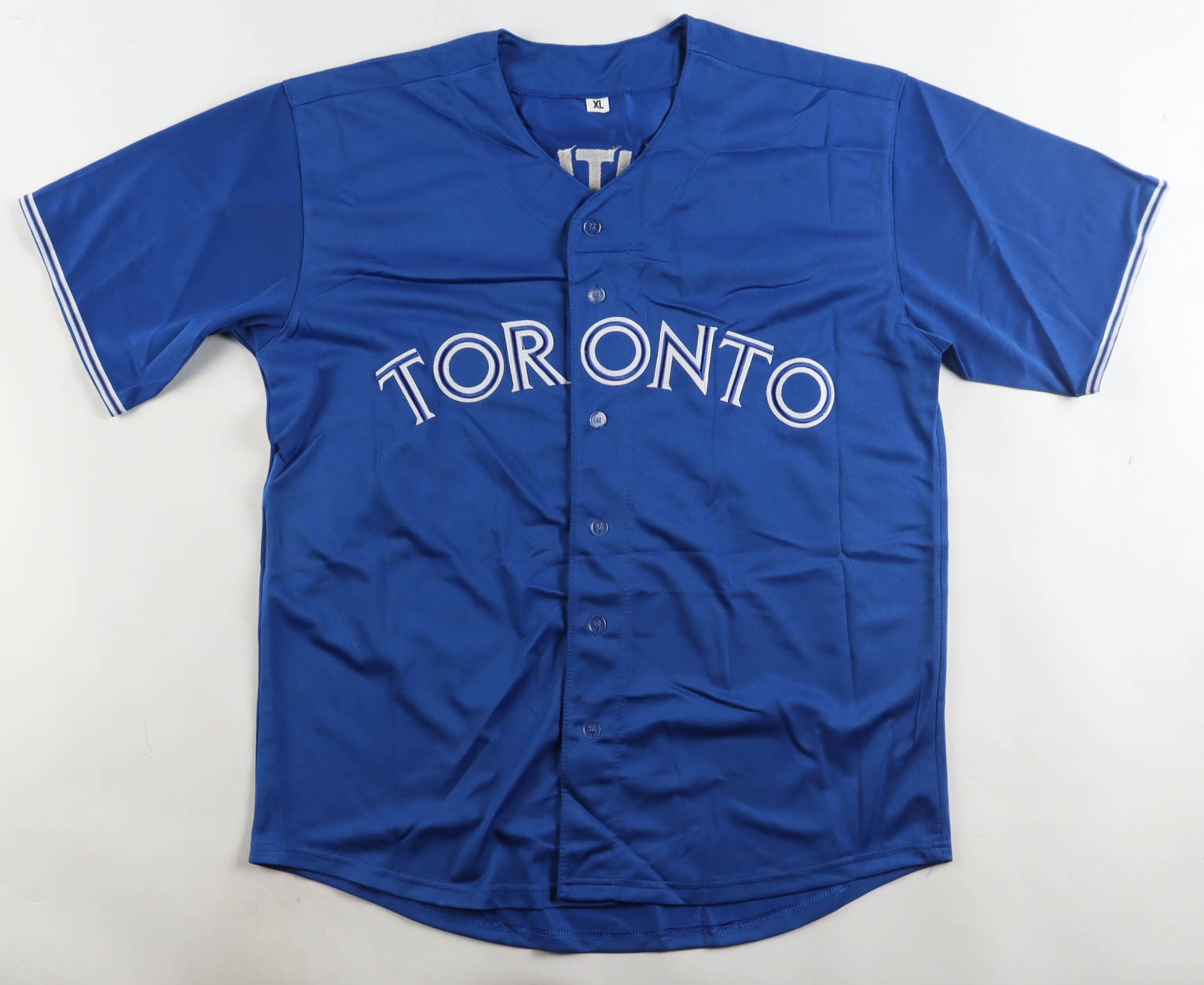 Custom jersey. Everything is sewn on, size XL. Hand-signed and inscribed by Jose Bautista.