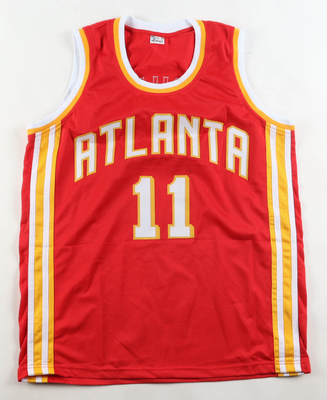 Custom jersey ersey with everything sewn on, size XL. Hand-signed by Trae Young.