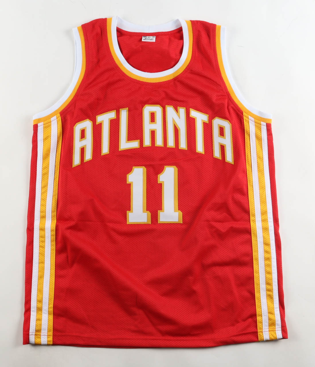 Custom jersey ersey with everything sewn on, size XL. Hand-signed by Trae Young.