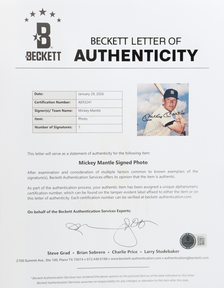 The autograph includes an official Beckett Authentication Services hologram and matching LOA for authenticity purposes.