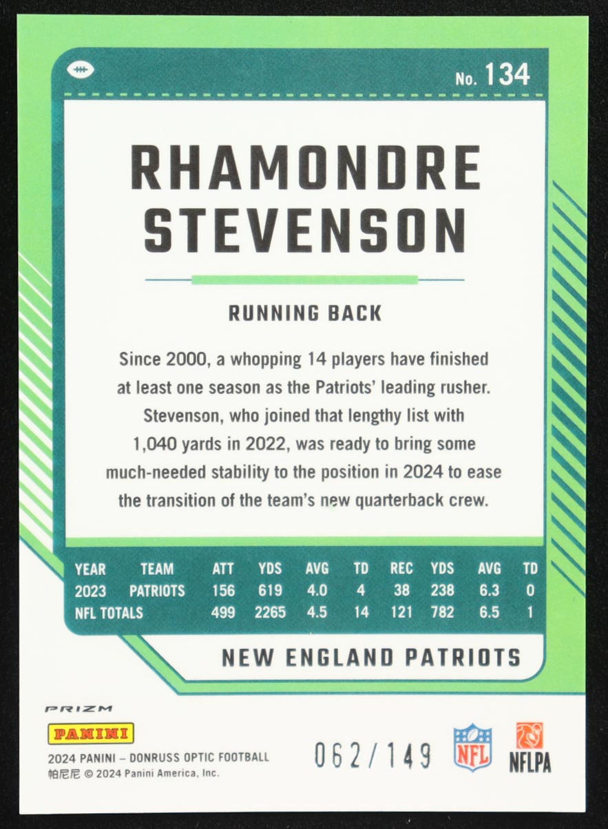 Rhamondre Stevenson 2024 Donruss Optic Flex #134 #62/149