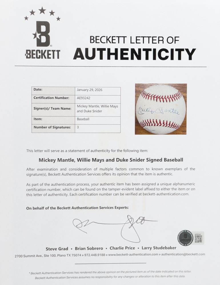 Mickey Mantle, Willie Mays & Duke Snider Signed OAL Baseball (Beckett)