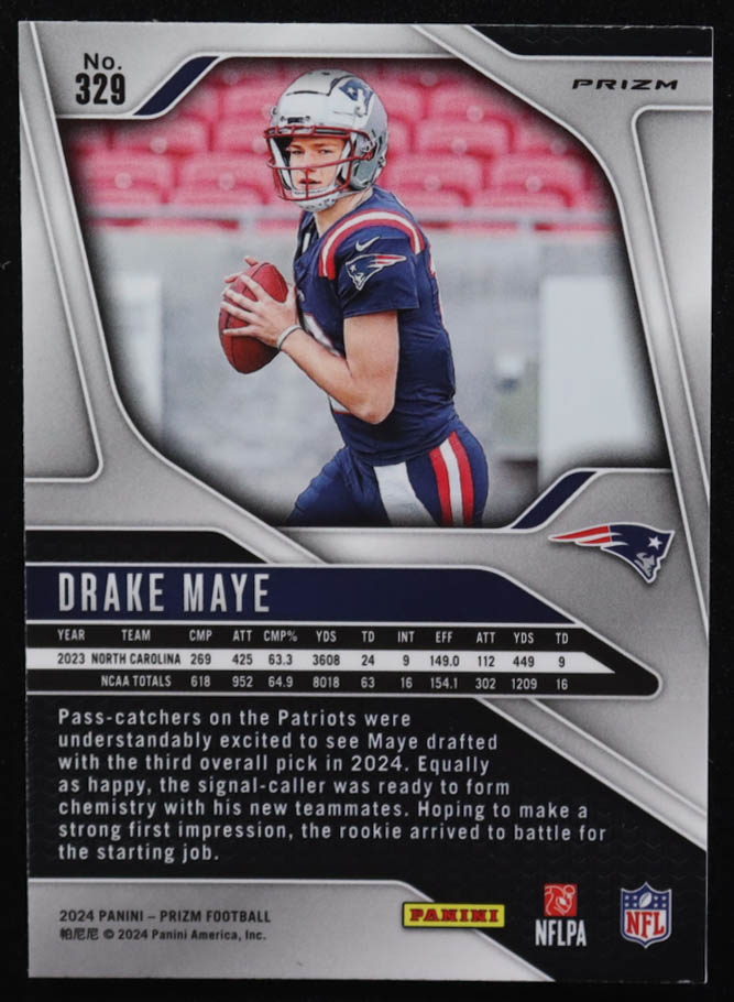 Drake Maye 2024 Panini Prizm Prizms Orange Lazer #329 RC