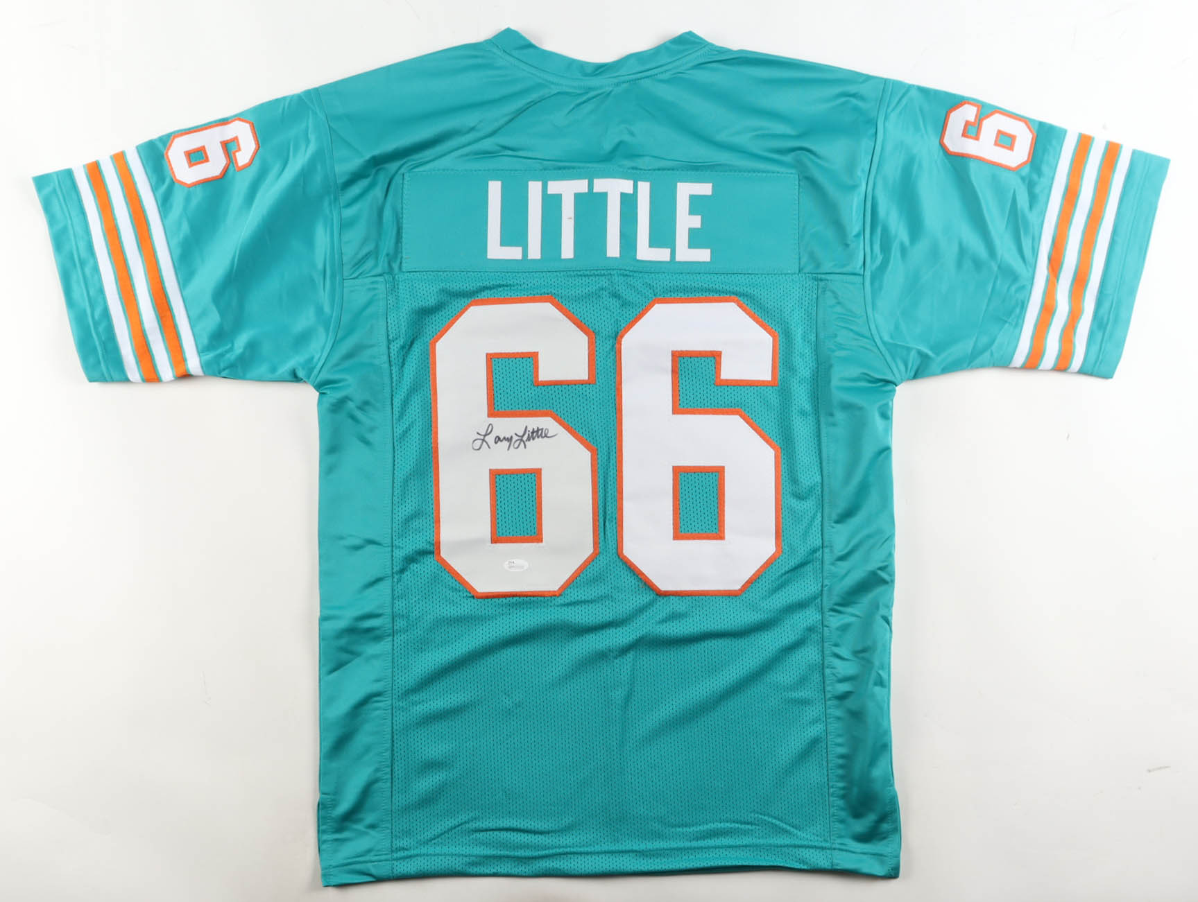 Custom jersey with everything sewn on, size XL. Hand-signed by Larry Little (Miami Dolphins, HOF).