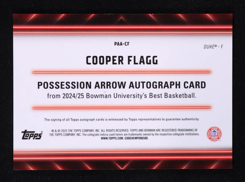 Cooper Flagg 2024-25 Bowman's Best University Possession Arrow Autographs Gold Refractors #PAACF #3/50 RC
