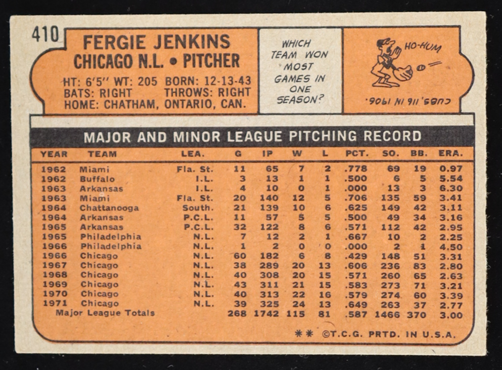 Fergie Jenkins 1972 Topps #410