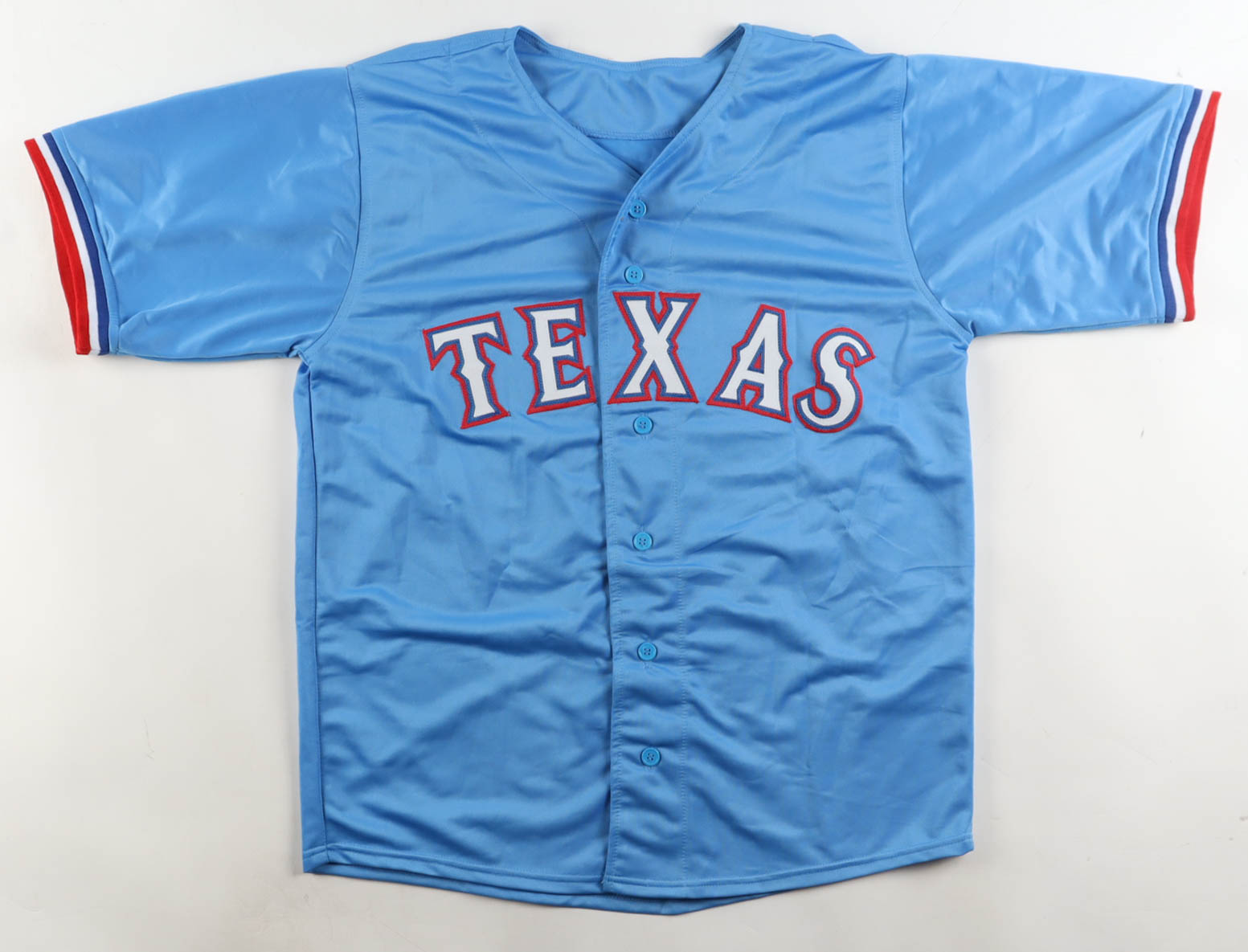Custom jersey with everything sewn on, size XL. Hand-signed by Adolis Garcia (Texas Rangers).