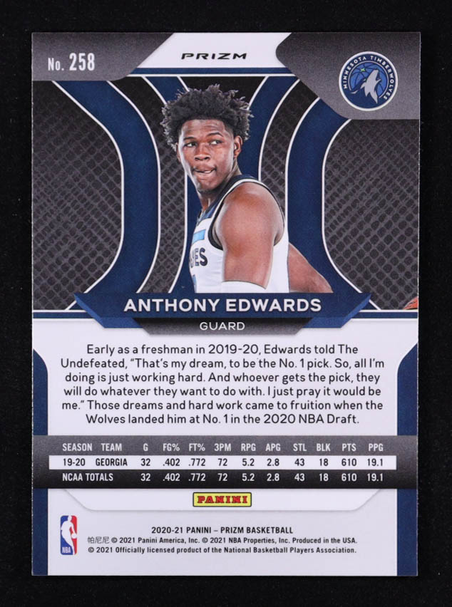 Anthony Edwards 2020-21 Panini Prizm Red White Blue Prizm #258 RC