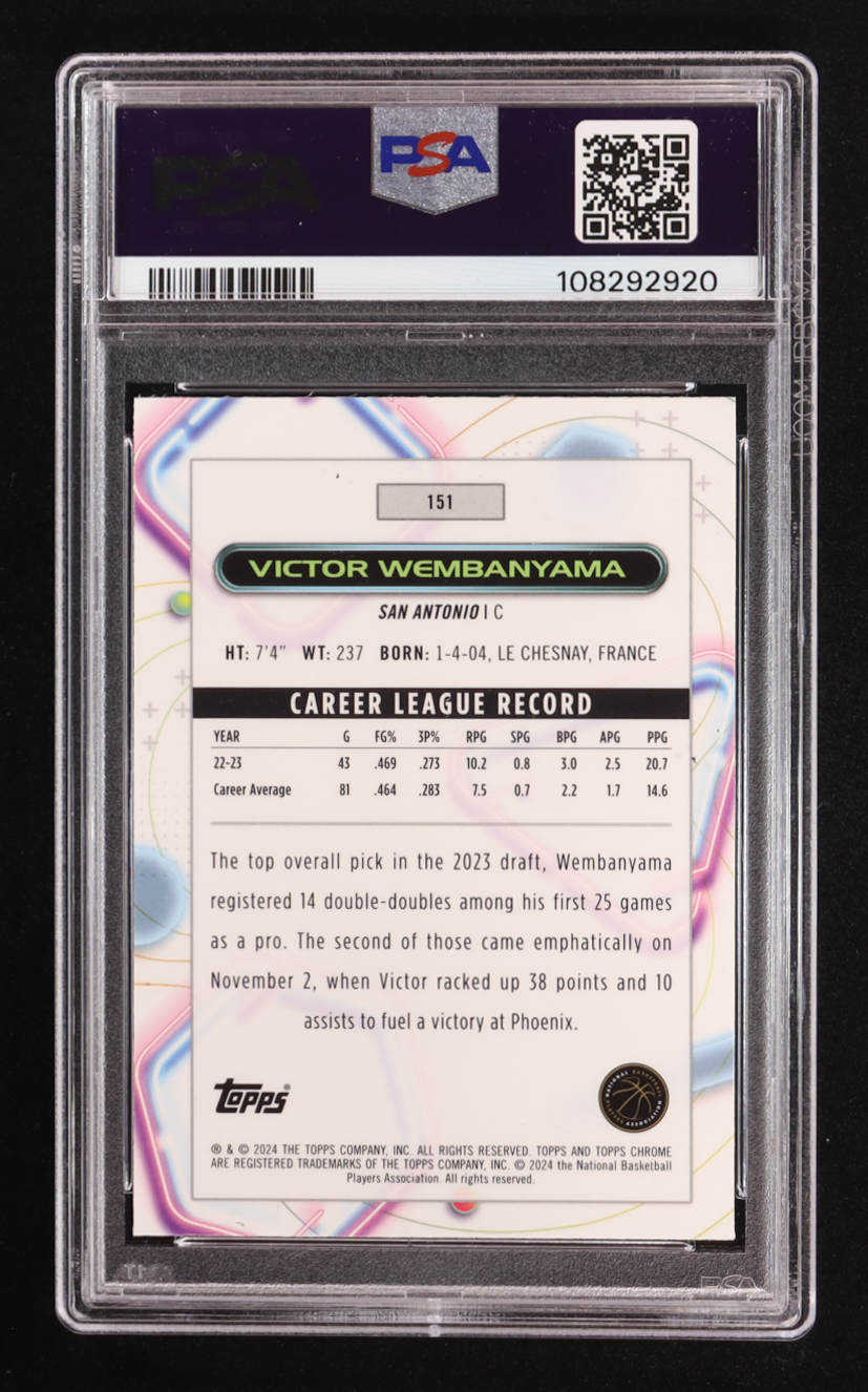 Victor Wembanyama 2023-24 Topps Cosmic Chrome #151 RC (PSA 10)