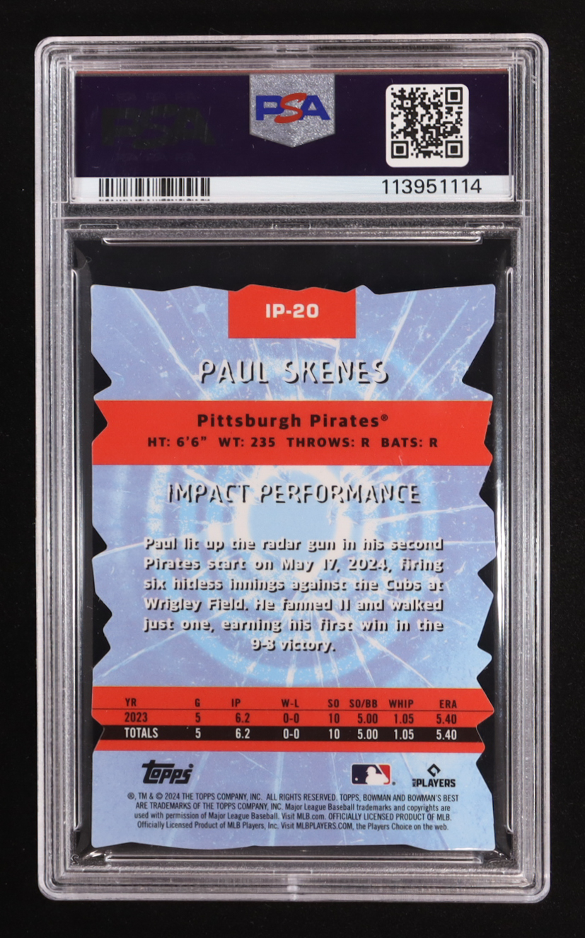 Paul Skenes 2024 Bowman's Best Impact Players Lava #IP20 #17/50 RC (PSA 10)
