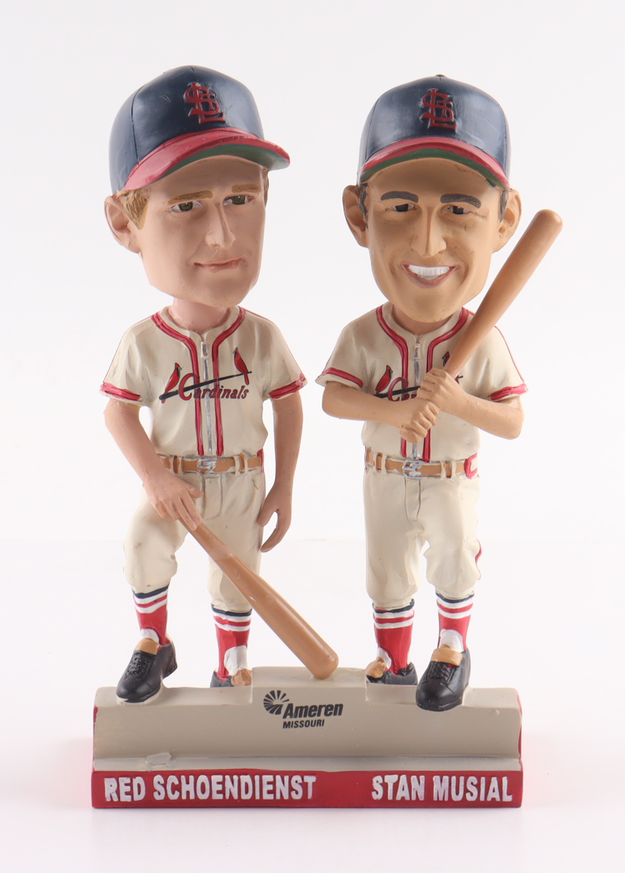 bobblehead measures approximately 7.5" in height and features Stan Musial (D. 2013, St. Louis Cardinals, HOF) and Red Schoendienst (D. 2018, St. Louis Cardinals, HOF).. Please note, bobblehead is unsigned.
