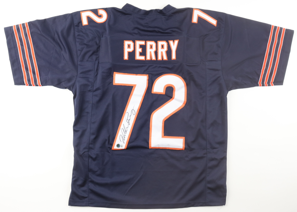 Custom jersey with everything sewn on, size XL. Hand-signed by William Perry (Chicago Bears).