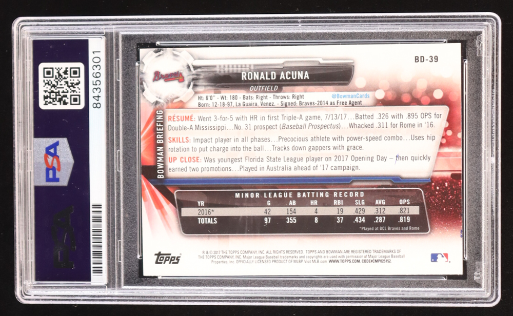 Ronald Acuna Jr. Signed 2017 Bowman Draft #BD39 RC (PSA)
