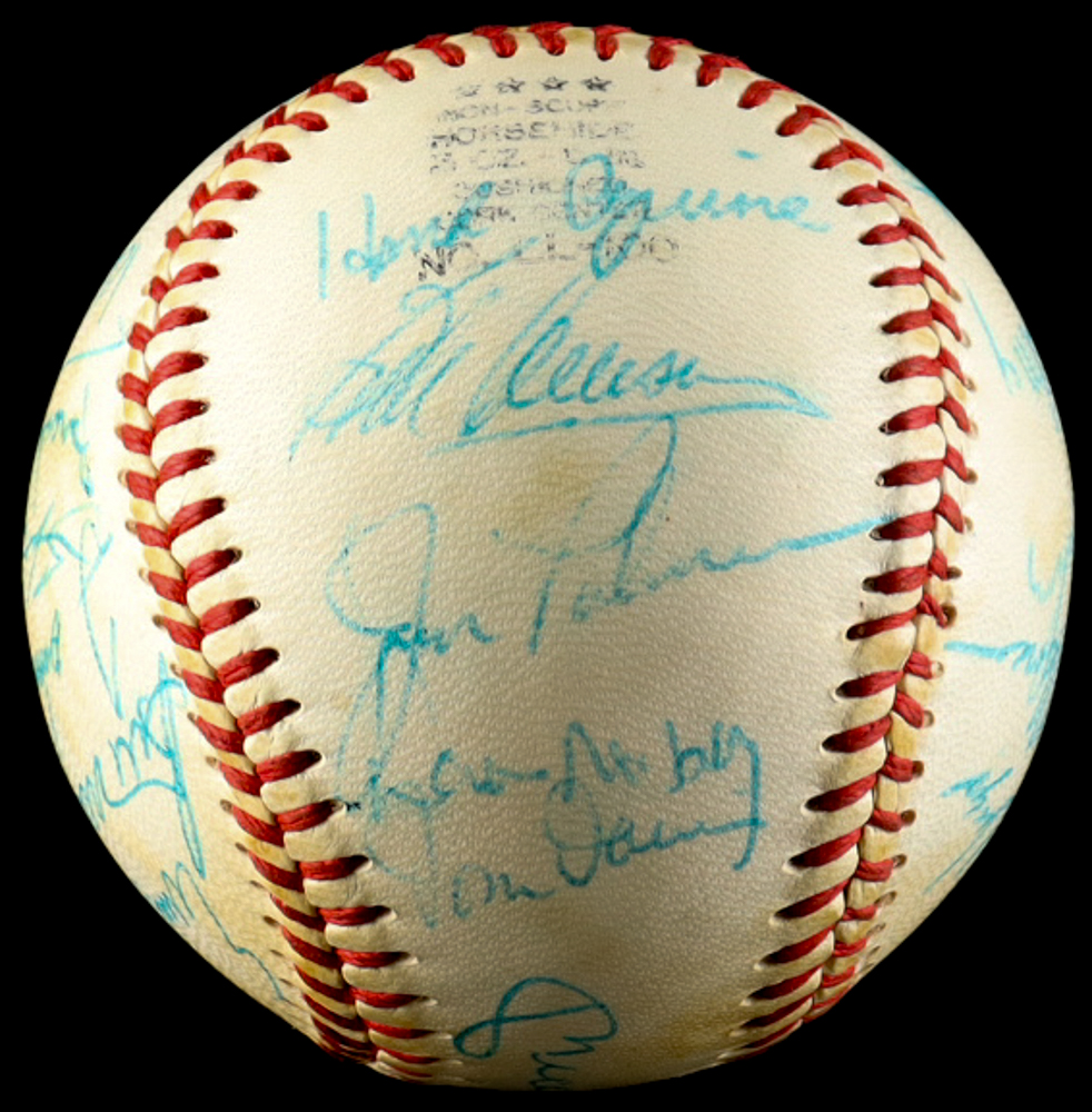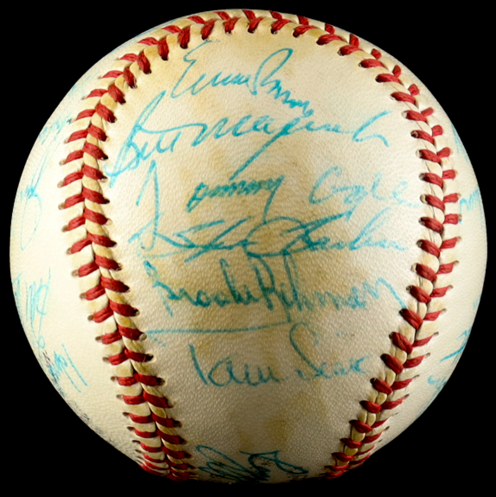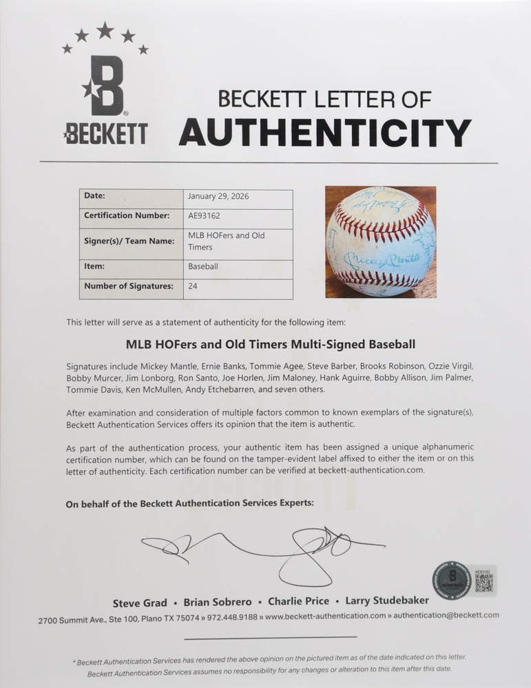 Hall of Famers & Old-Timers | OML Baseball Signed by (24) with Mickey Mantle, Ernie Banks, Brooks Robinson (Beckett)