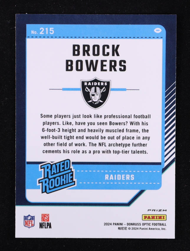 Brock Bowers 2024 Donruss Optic Purple Shock #215 RR RC