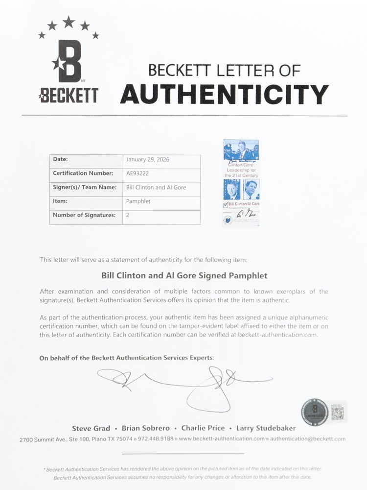 Bill Clinton & Al Gore Signed Leadership For The 21st Century Pamphlet (Beckett)