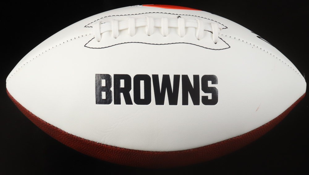 Cleveland Browns logo football. Hand-signed by Harold Fannin Jr.