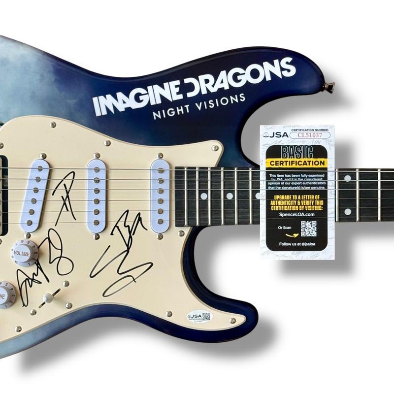 "Imagine Dragons" Stratocaster Guitar Band-Signed By (4) with Dan Reynolds, Wayne Sermon, Ben McKee & Daniel Platzman (JSA)