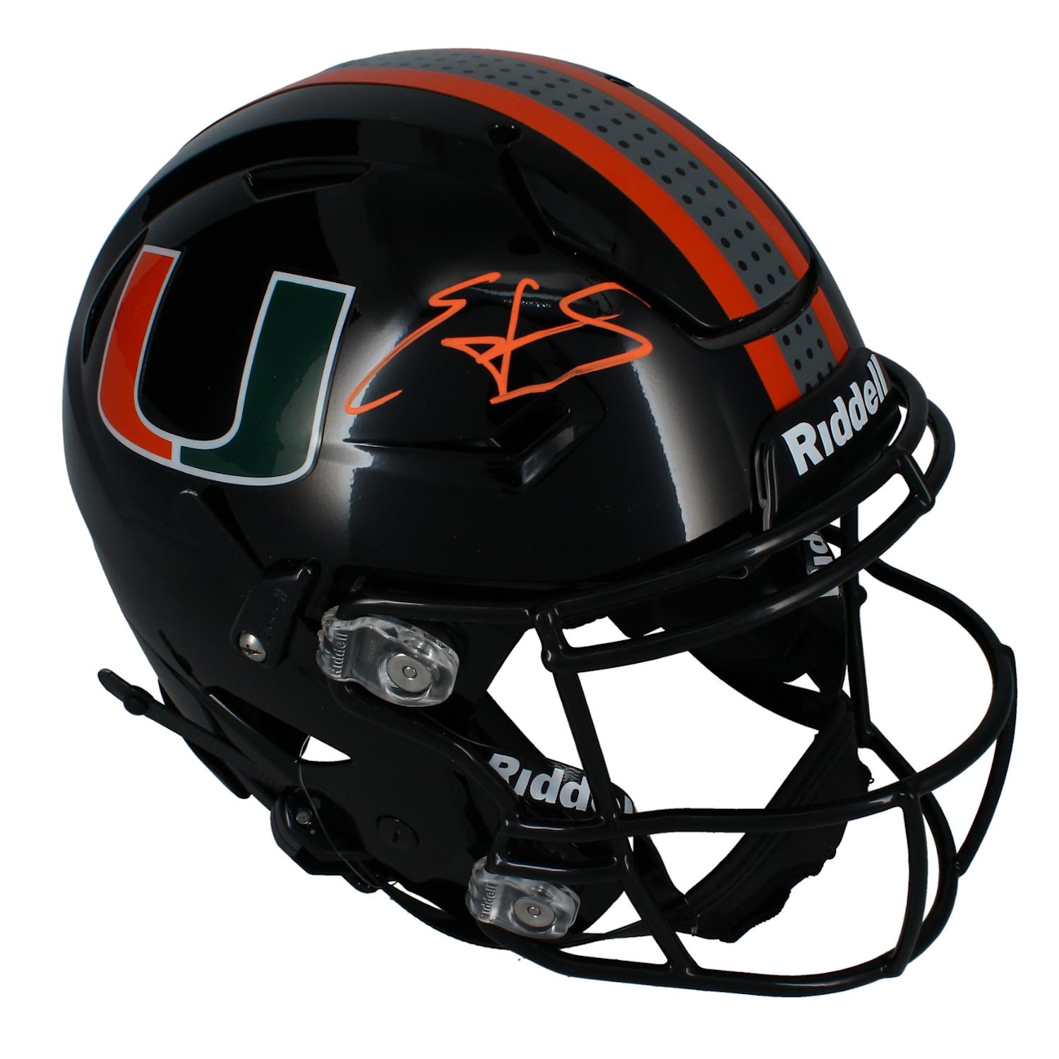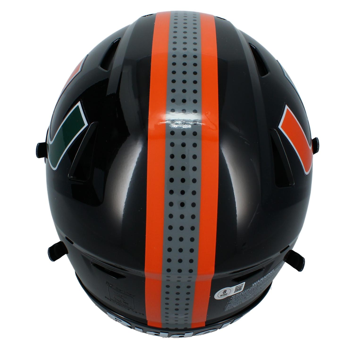 Riddell Miami Hurricanes full-size authentic on-field alternate speedflex helmet. Hand-signed by Edgerrin James.