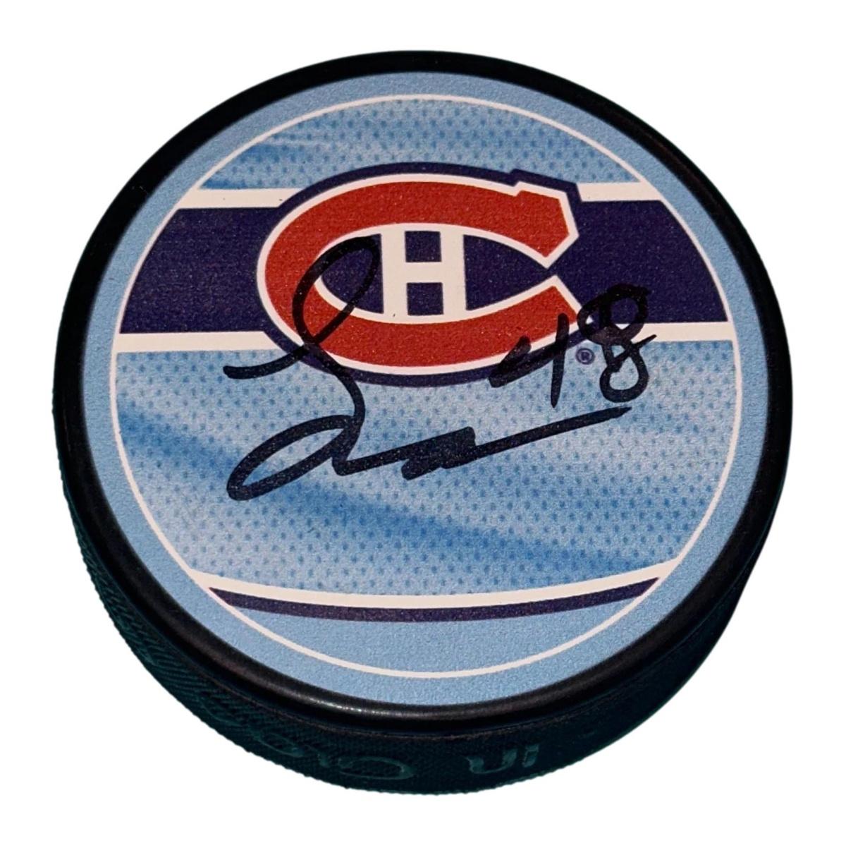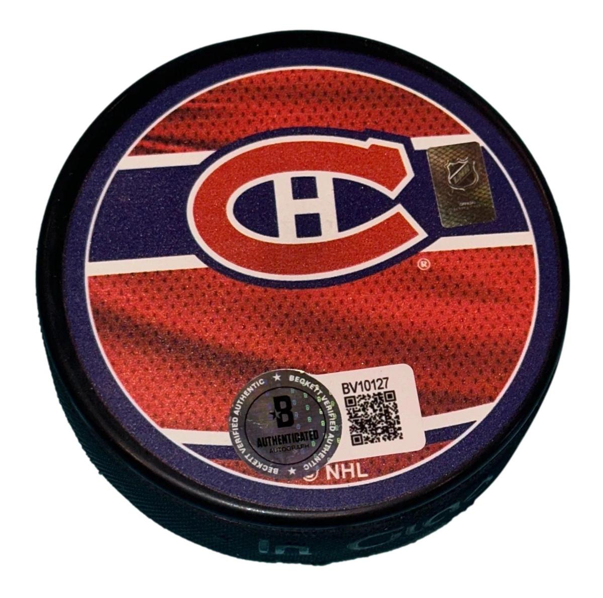 Lane Hutson Signed Canadiens Reverse Retro Puck (Beckett)