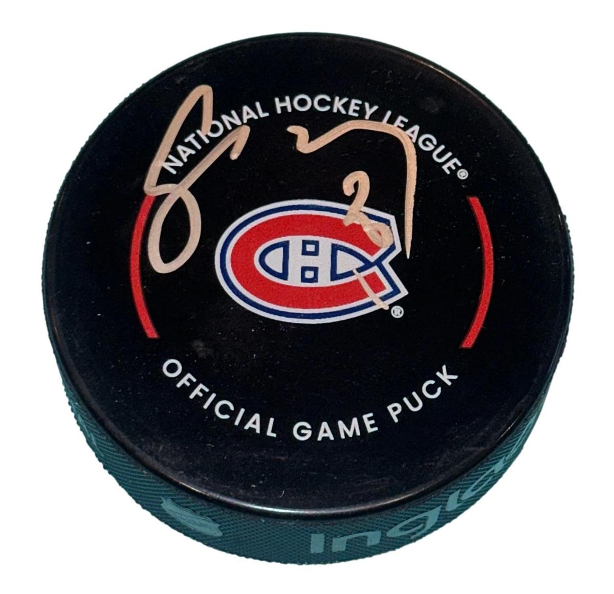 Montreal Canadiens Official Game puck hand-signed by Juraj Slafkovsky.