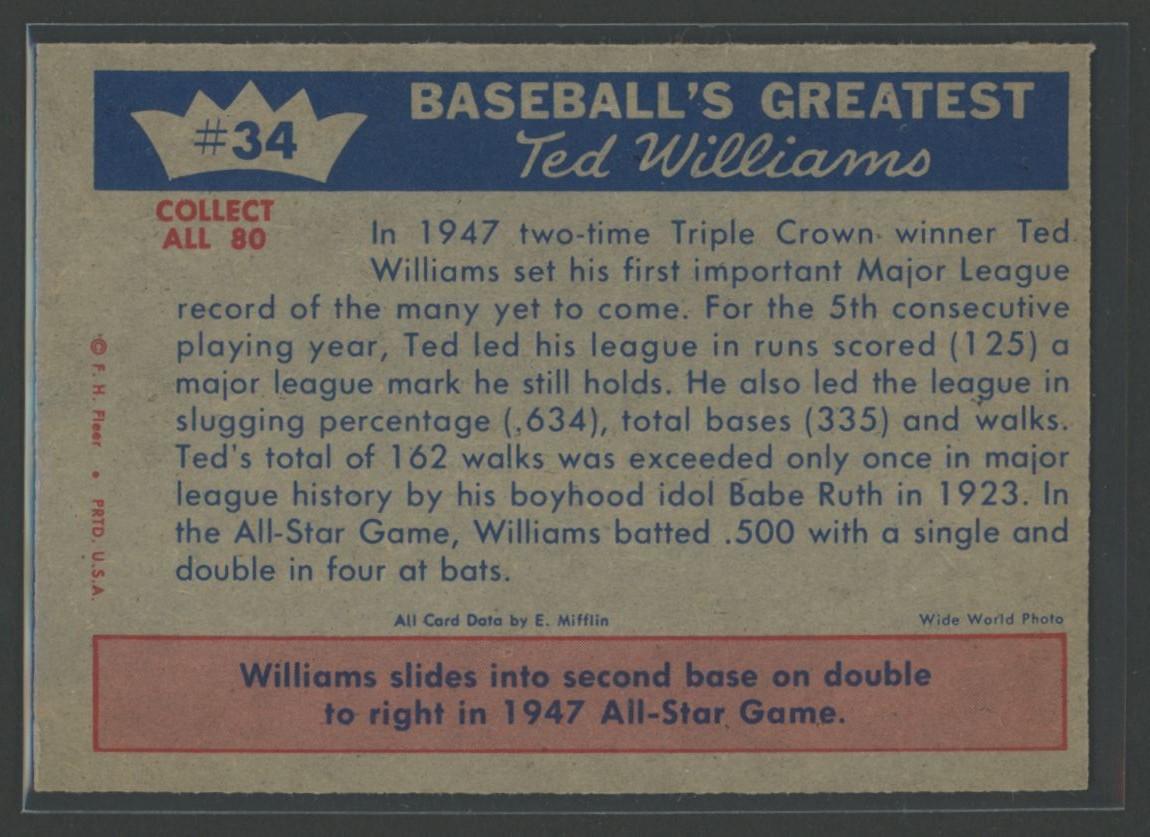 Ted Williams 1959 Fleer #34 Runs Scored Record