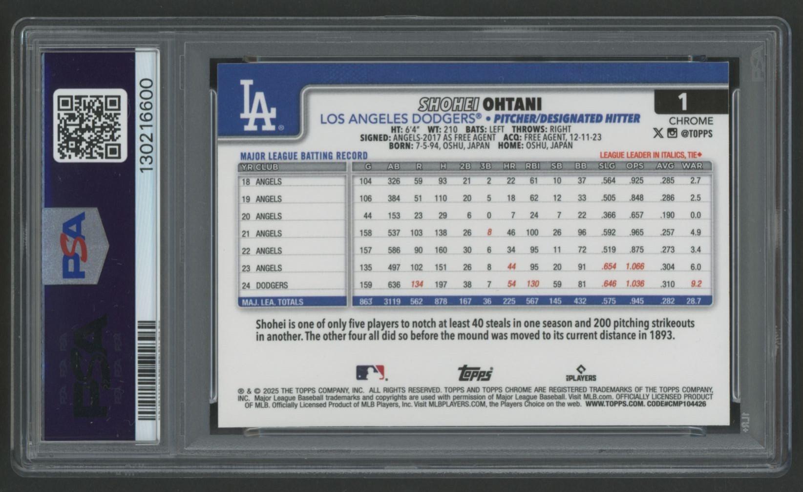 Shohei Ohtani 2025 Topps Chrome #1 (PSA 9)