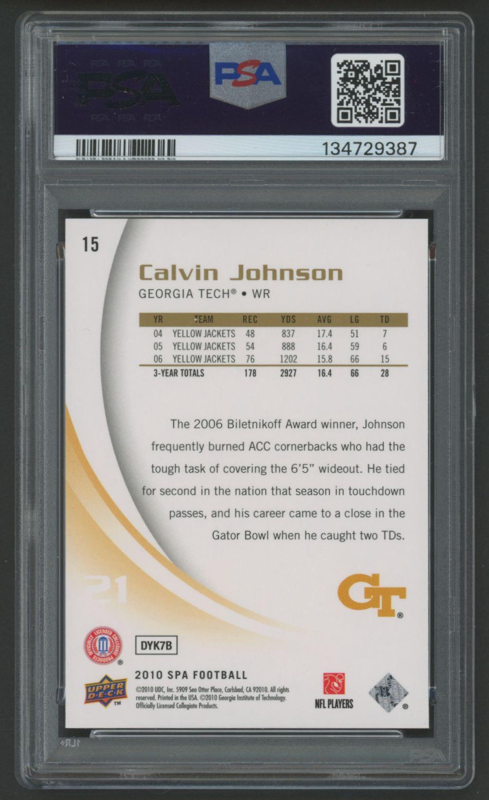Calvin Johnson 2010 SP Authentic #15 RC (PSA 10)