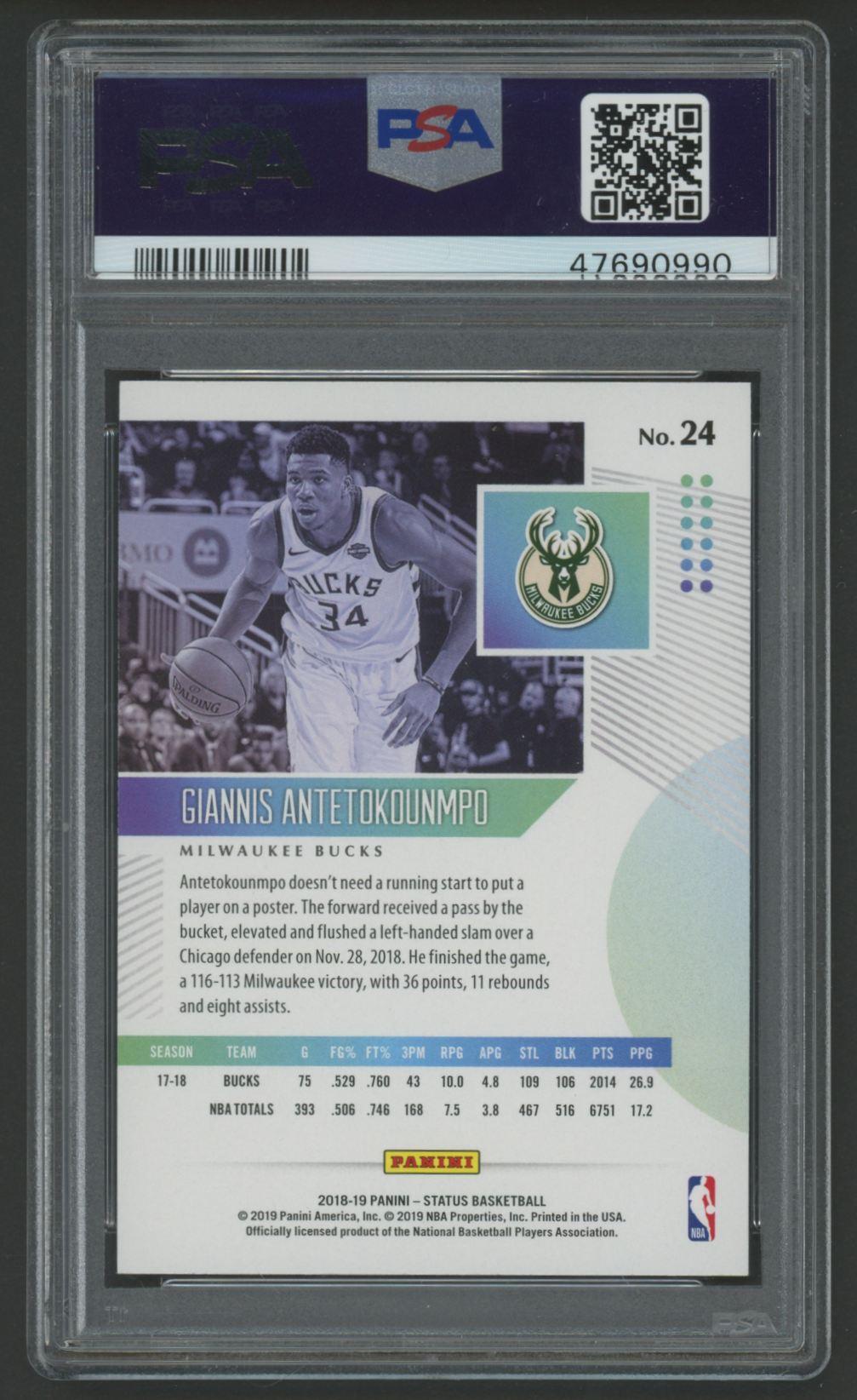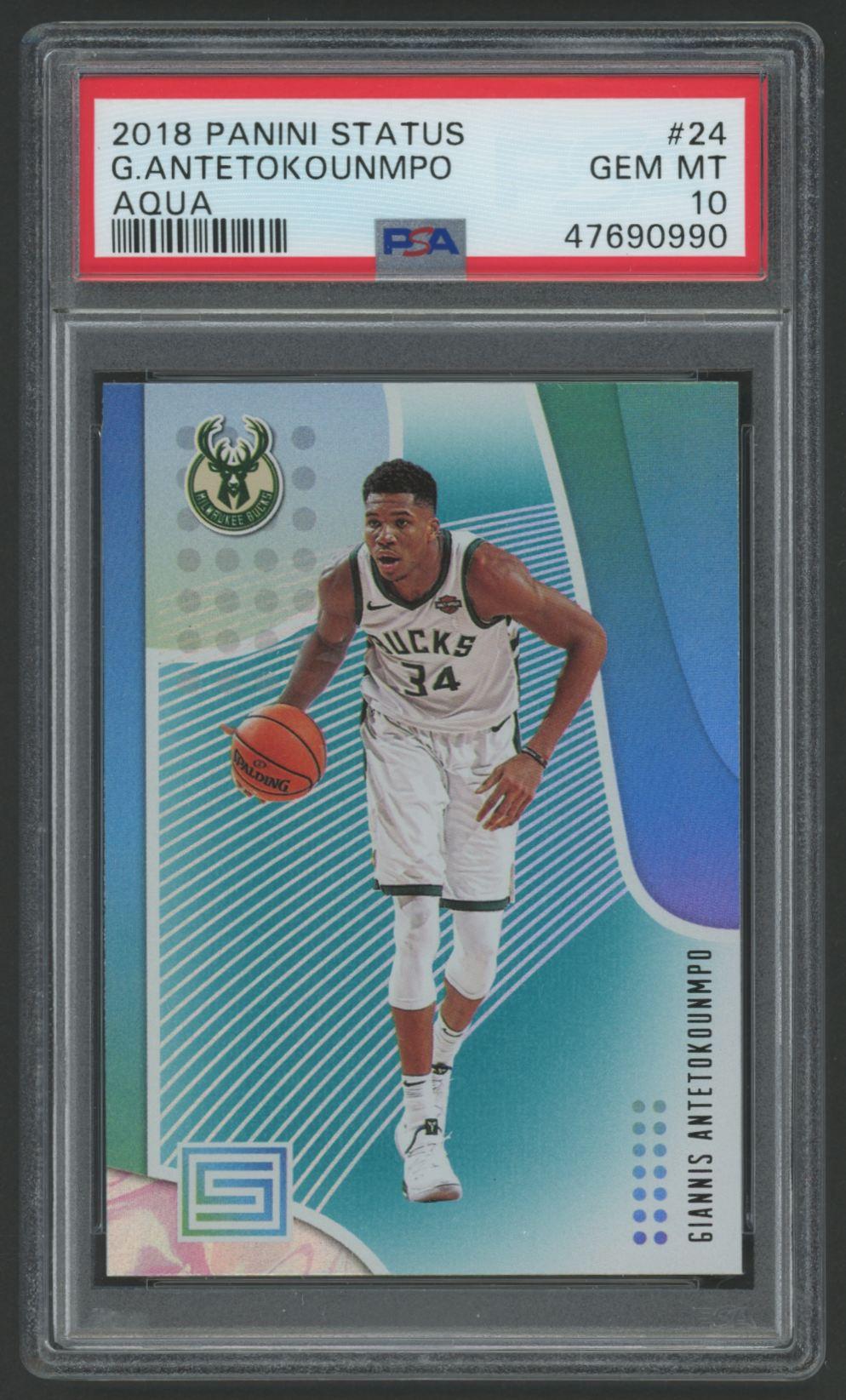 Giannis Antetokounmpo 2018 Panini Status Aqua #24 (PSA 10)