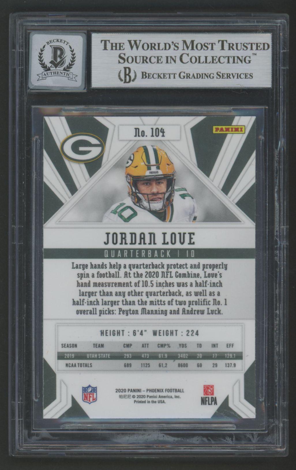 Jordan Love Signed 2020 Panini Phoenix Fire Burst #104 RC (BGS | Auto 10)