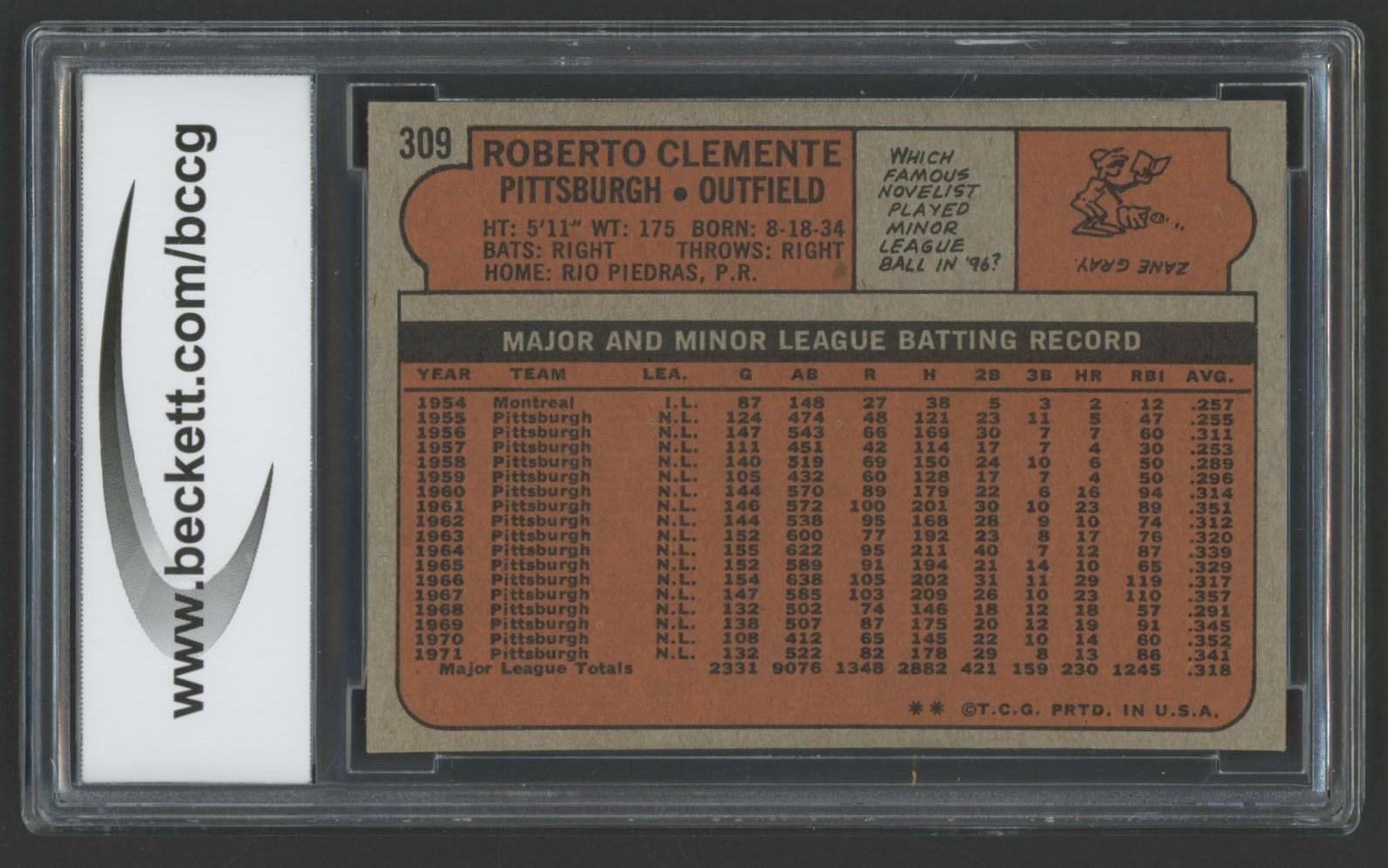 Roberto Clemente 1972 Topps #309 (BCCG 8)
