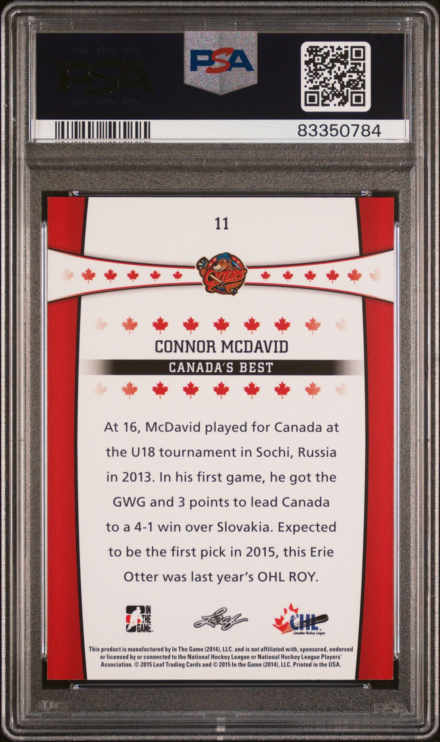 Connor McDavid 2015-16 Leaf In the Game CHL Draft #11 RC (PSA 9)
