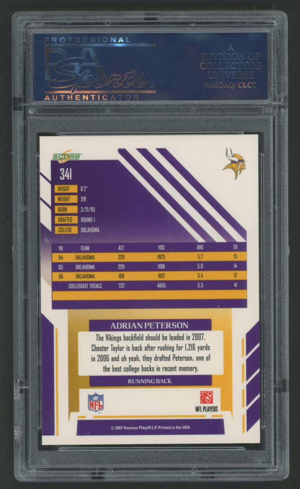 Adrian Peterson 2007 Score #341 RC (PSA 10)
