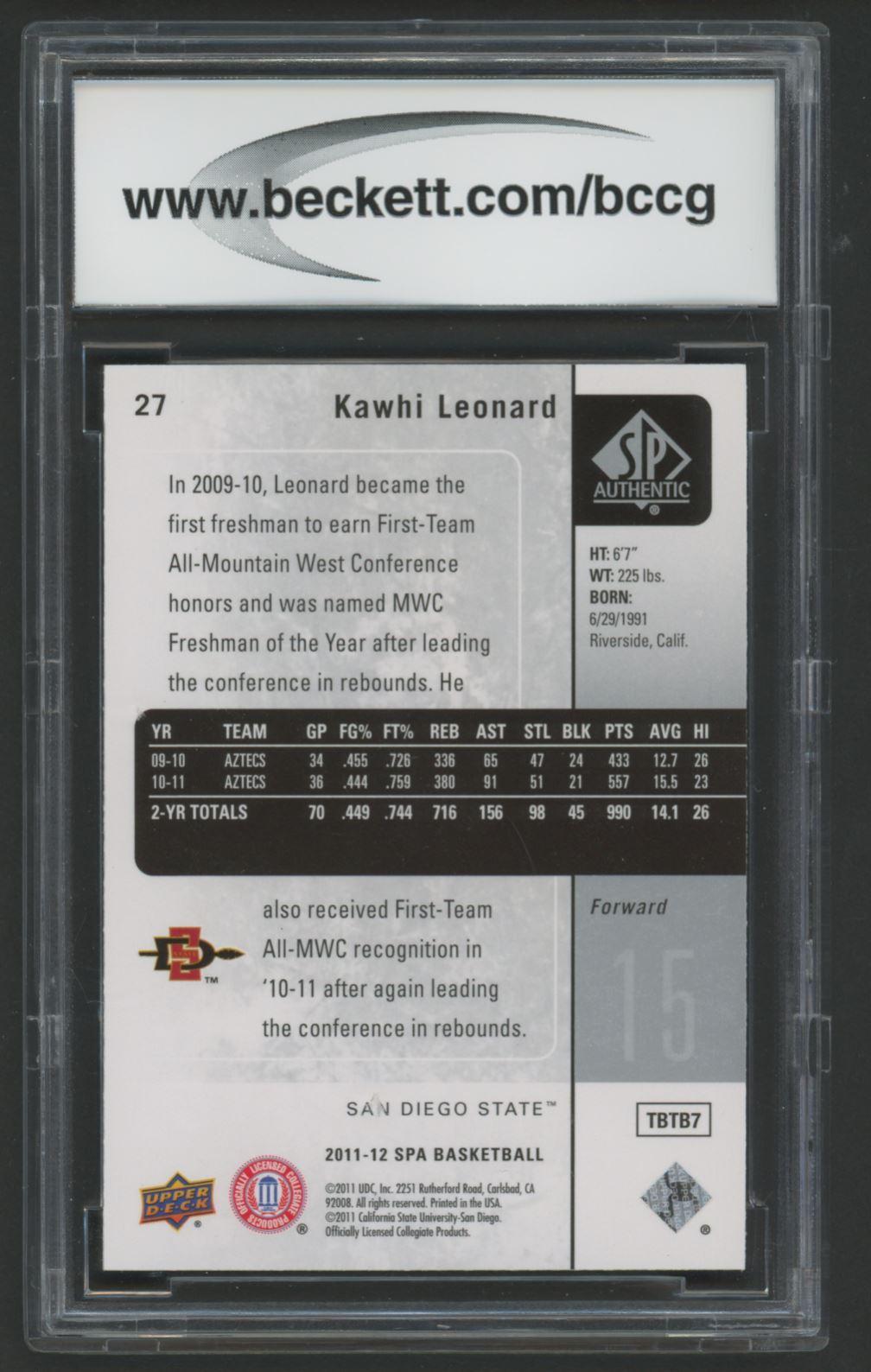 Kawhi Leonard 2011-12 SP Authentic #27 RC (BCCG 10)