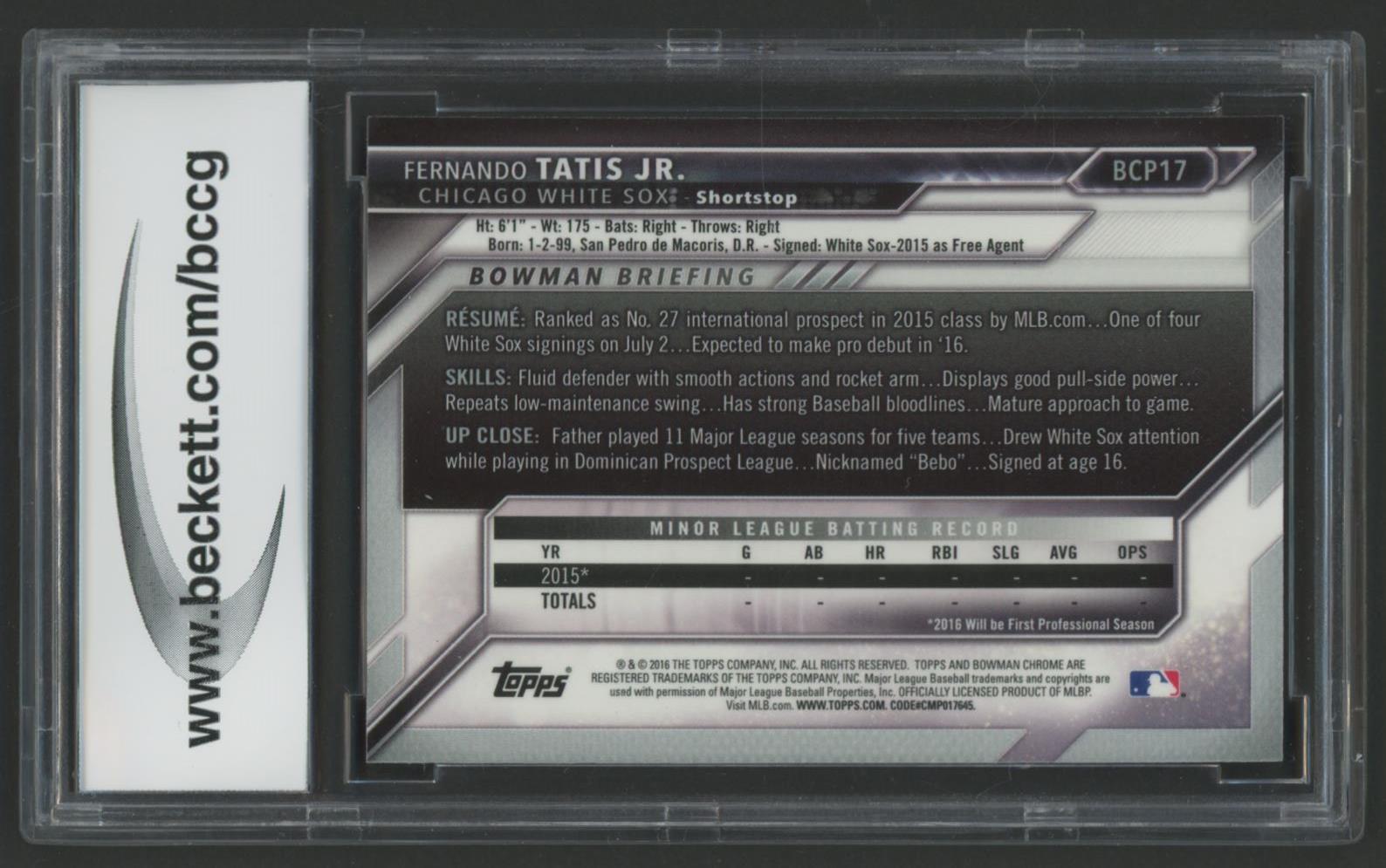 Fernando Tatis Jr. 2016 Bowman Chrome Prospects #BCP17 (BCCG 9)
