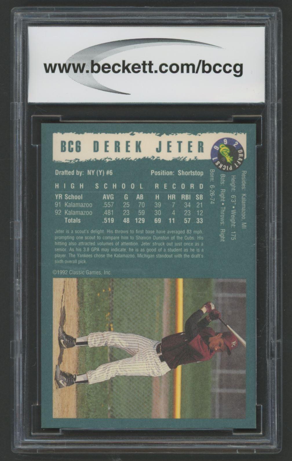 Derek Jeter 1992 Classic Draft Picks Foil Bonus #BC6 RC (BCCG 9)