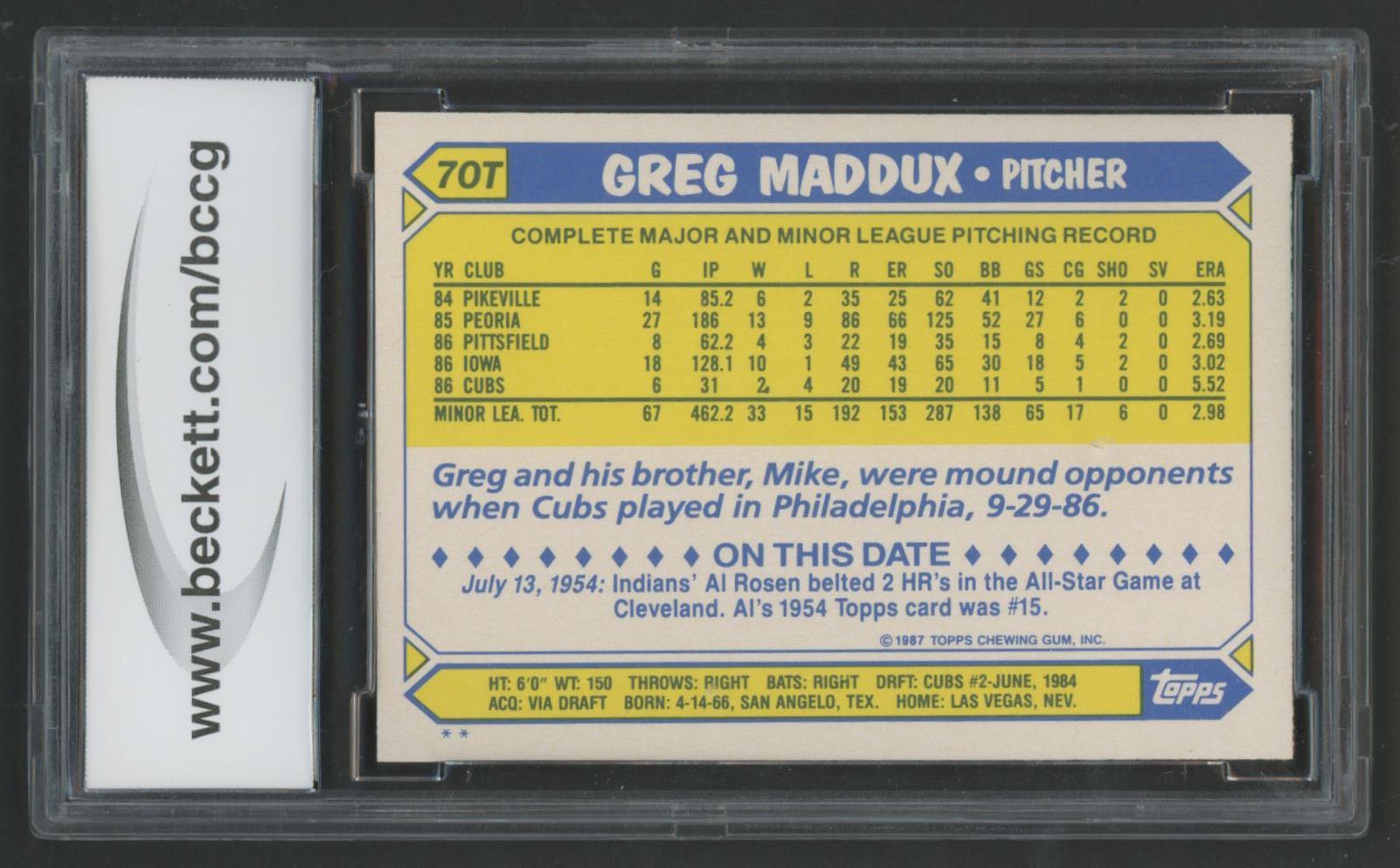 Greg Maddux 1987 Topps Traded #70T (BCCG 10)