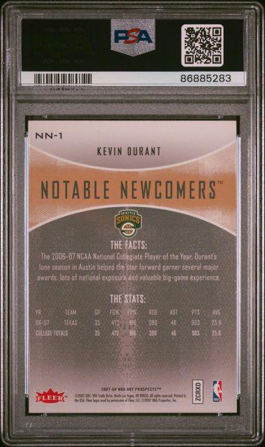 Kevin Durant 2007-08 Fleer Hot Prospects Notable Newcomers #NN-1 RC (PSA 9)