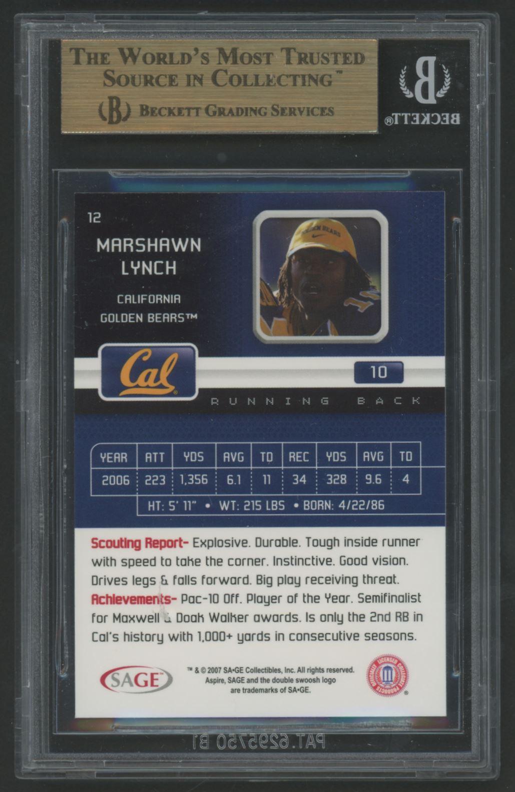 Marshawn Lynch 2007 Aspire #12 (BGS 9.5)