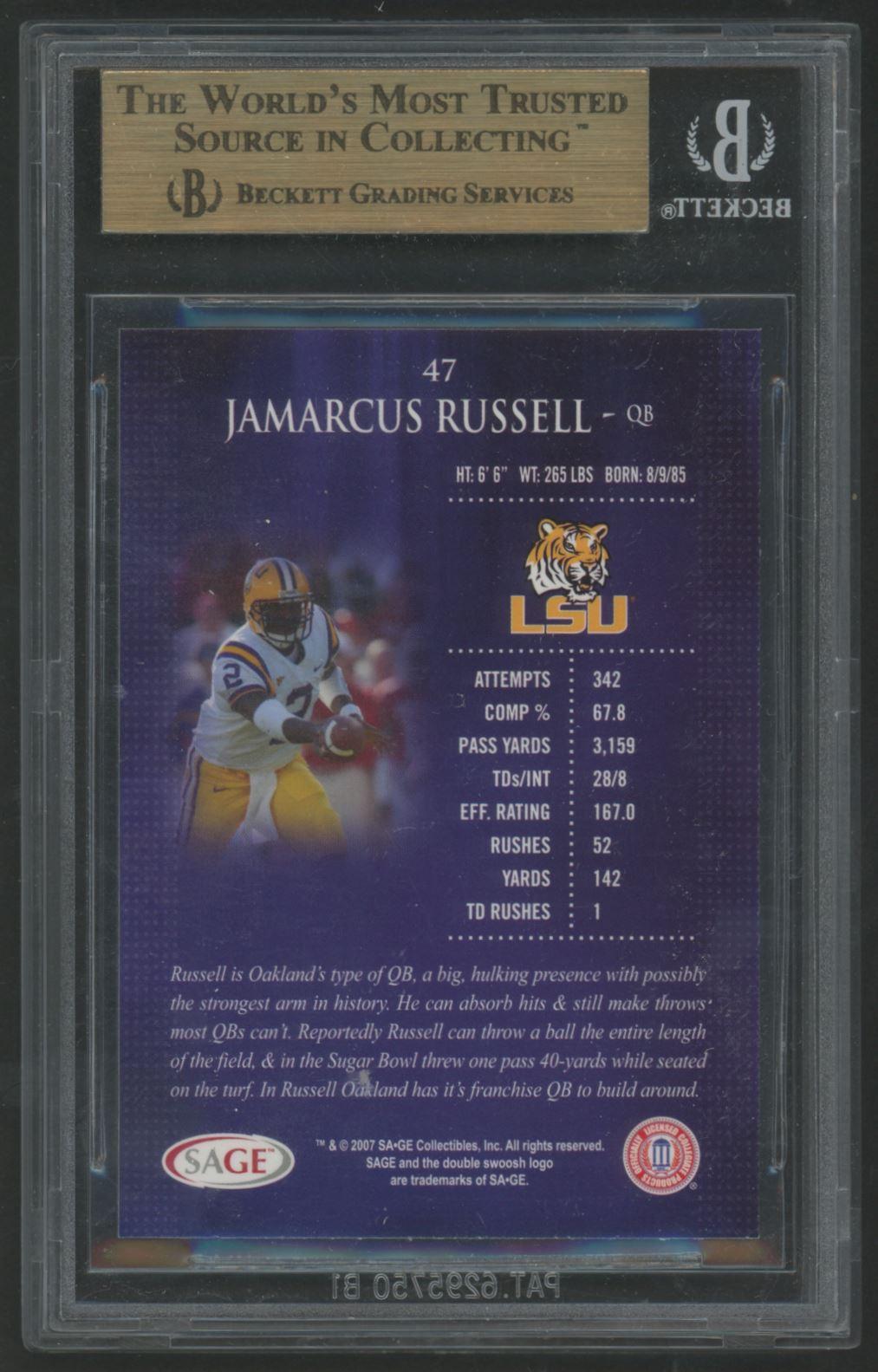 JaMarcus Russell 2007 Sage #47 RC (BGS 9.5)