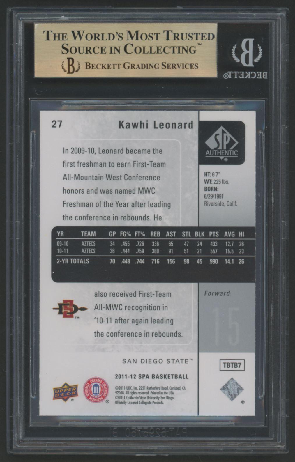 Kawhi Leonard 2011-12 SP Authentic #27 RC (BGS 9.5)